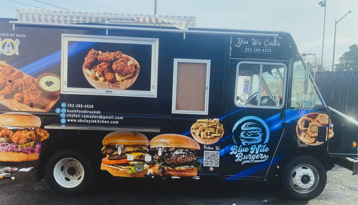 Blue Nile Burgers is a Washington, DC food truck that blends global influences with Sudanese flavors, inspired by Chef Ali’s journey across countries like Syria, Egypt, Thailand, Denmark, and the U.S. The menu features smashburgers, lamb burgers, fried chicken sandwiches, and wings, all seasoned with bold spices like Baharat and paired with signature sauces. Sides like za’atar fries and desserts like Sudanese baklava complete the experience.